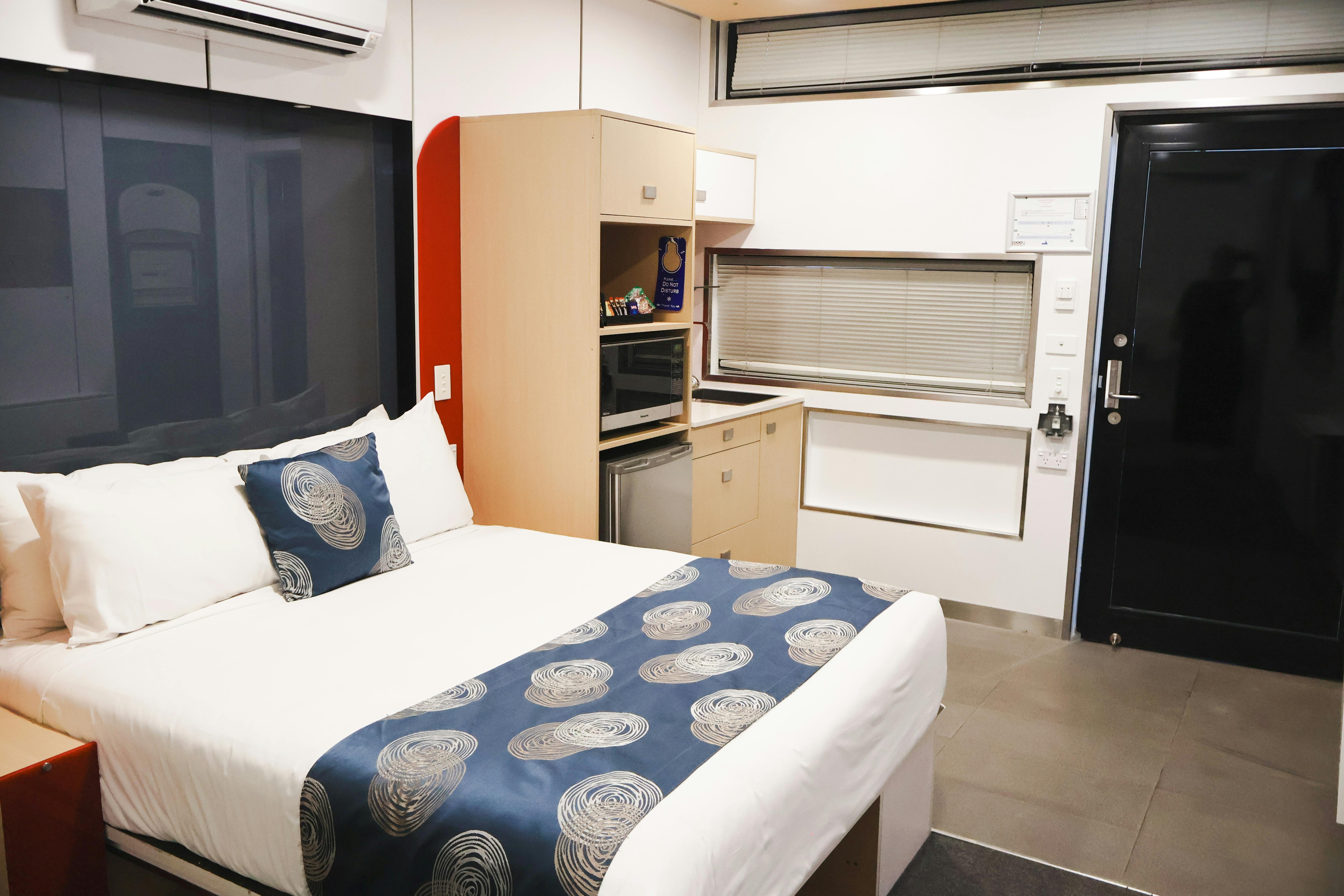Enjoy a climate-controlled environment with air conditioning, and unwind in the comfortable seating area or on the quality queen-size bed with a supportive mattress.